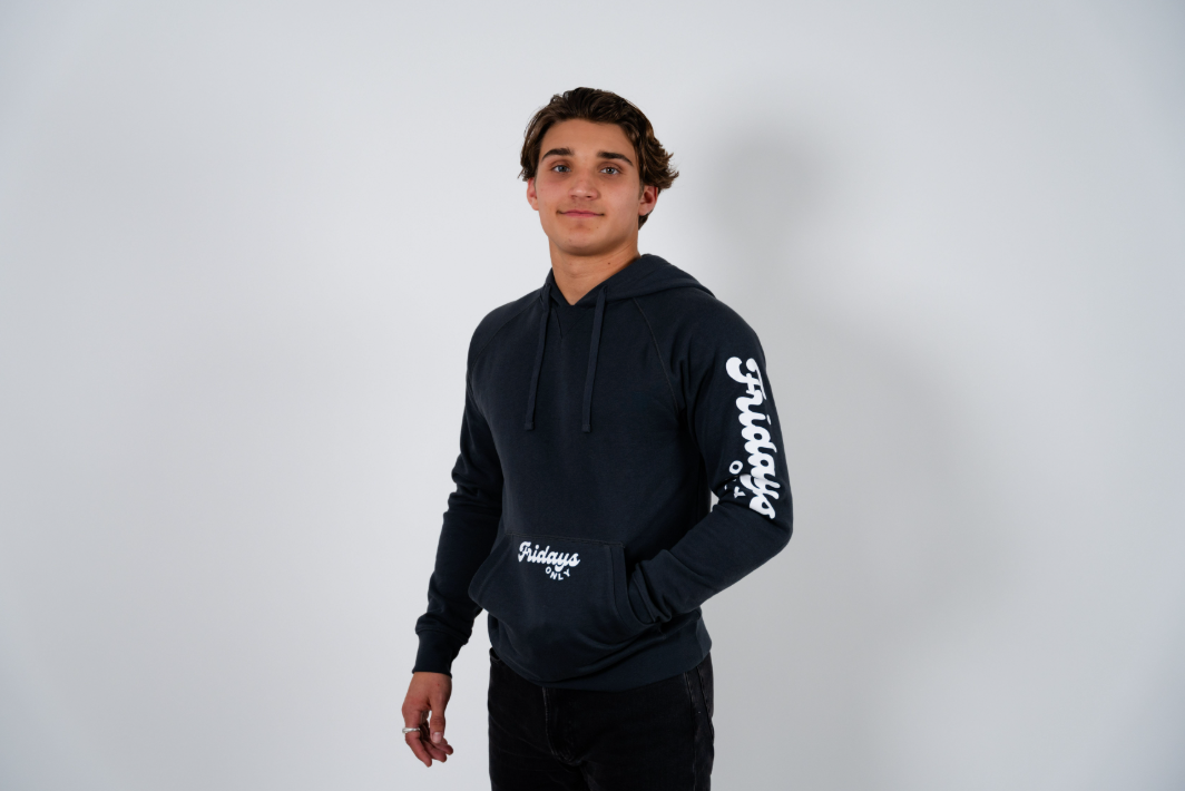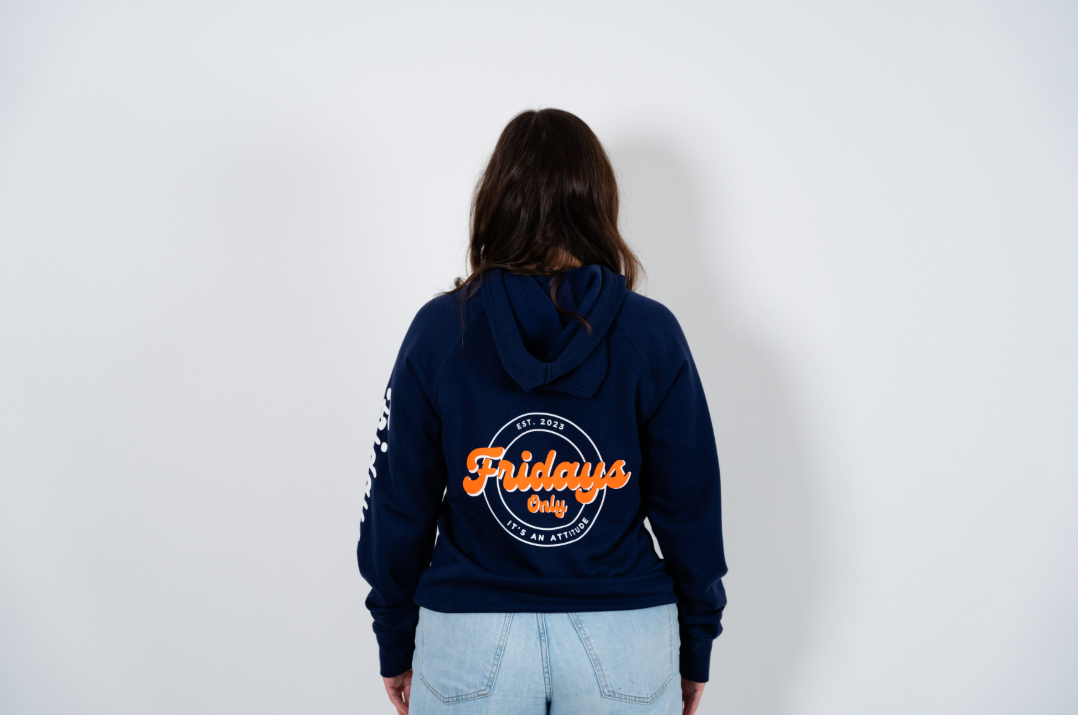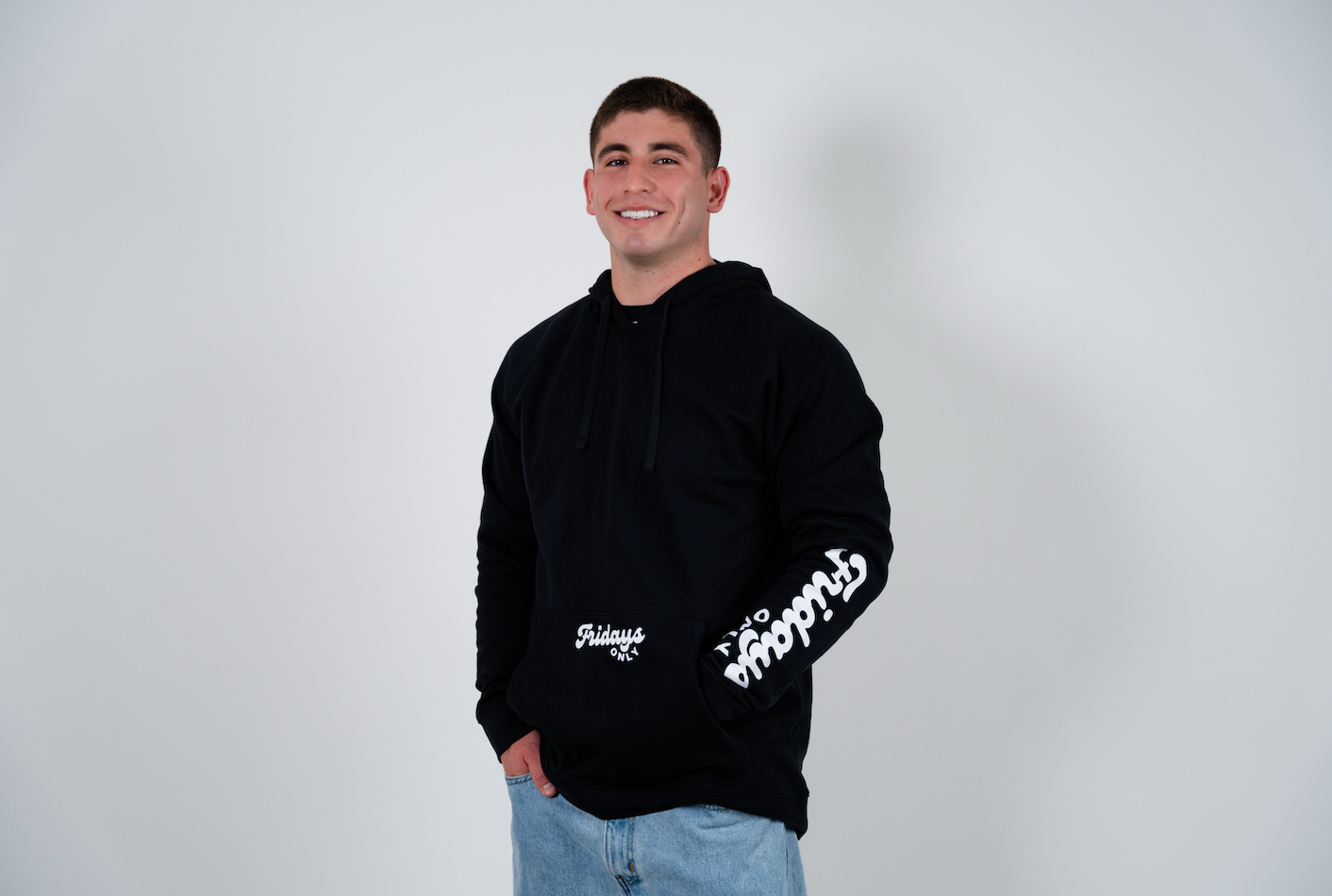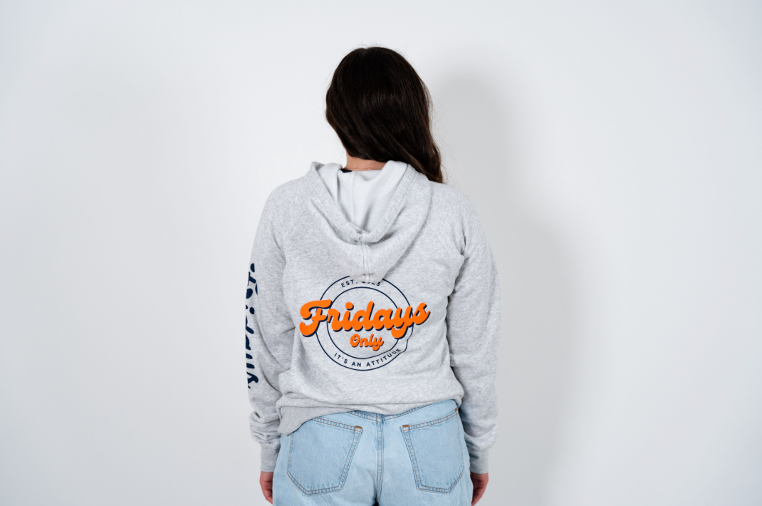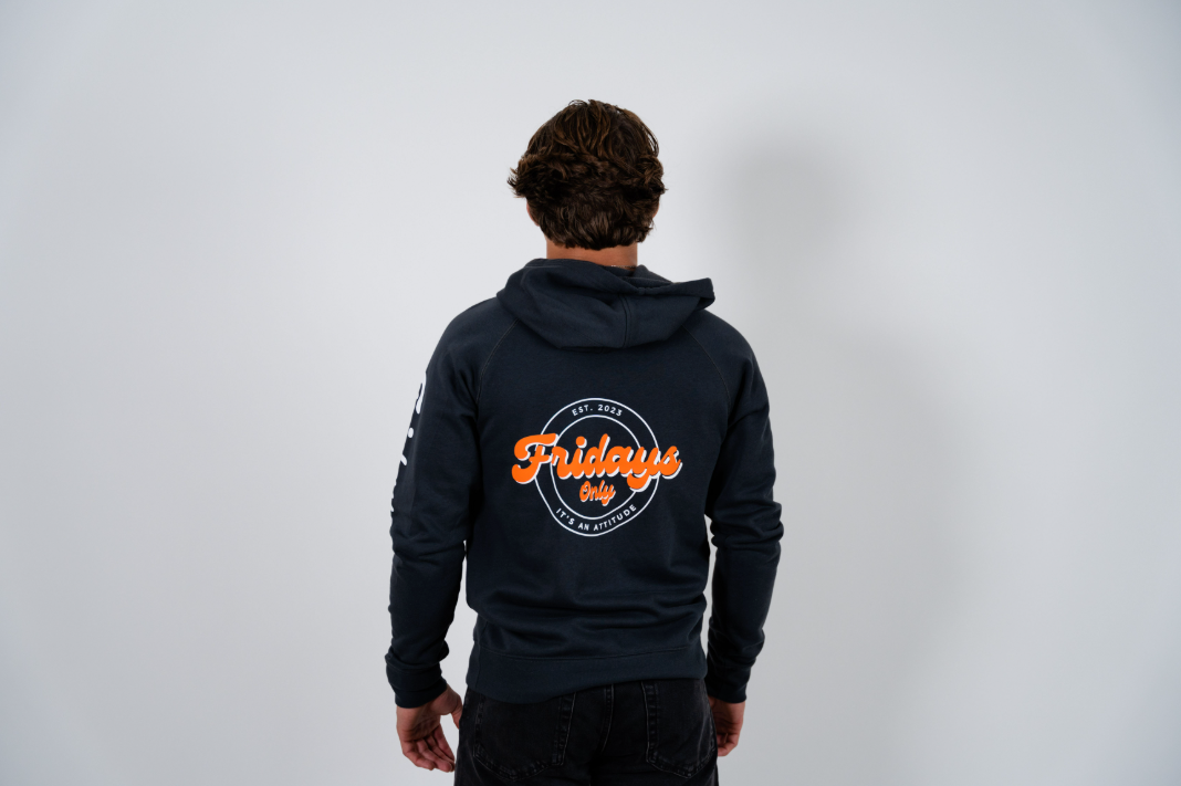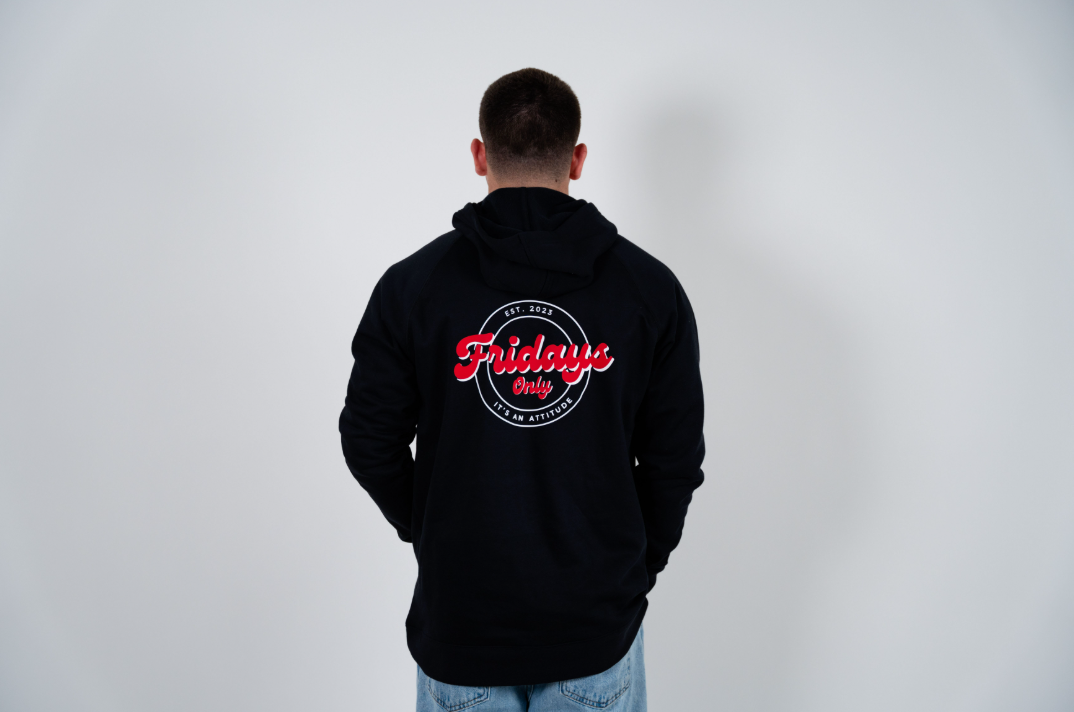 Stay warm and stylish with this ultra-comfortable pullover hoodie, designed for everyday wear. Featuring the signature Fridays Only logo down the sleeve, on the front pocket, and a standout medallion logo on the back, this hoodie is the perfect blend of casual and bold. Whether you're kicking back or heading out, it's made to keep up with your lifestyle.