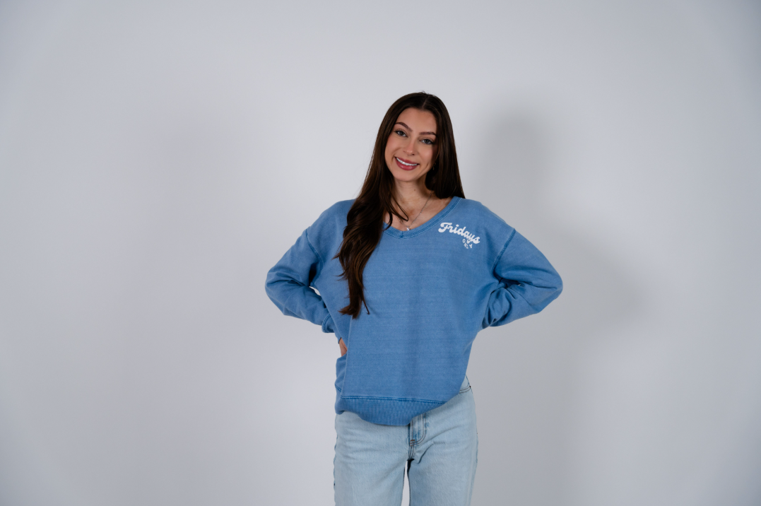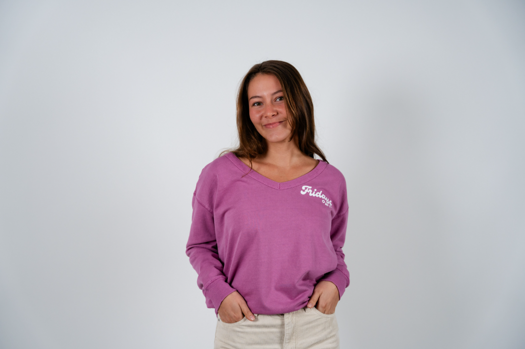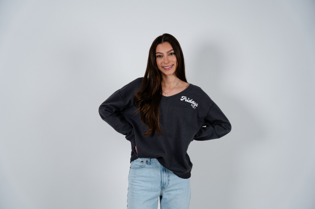 Wrap yourself in comfort with this ultra-soft women’s sweatshirt, designed with a flattering slight V-neck and a relaxed fit you’ll reach for again and again. Crafted from durable, breathable fabric, it’s the perfect blend of cozy and cool. Whether you’re lounging, layering, or heading out the door, the signature Fridays Only logo adds an effortless edge. Built to last and made to live in—this is the sweatshirt your closet (and weekend) has been waiting for.